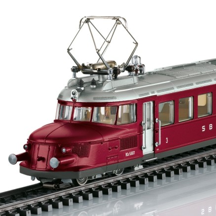 Zum Jubiläum der Oensingen-Balsthal-Bahn erschient der im Vorbild frisch aufgearbeitete Museumstriebswagen der Bauart Rce 2/4 in der aktuellen Ausführung der Epoche 6 der OeBB.